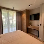 Vip Anvers Villa 50, özel yüzme havuzu ve donanımlı mini mutfak ile konaklama olanağı sunar. Konuklar terasta dinlenebilirler.